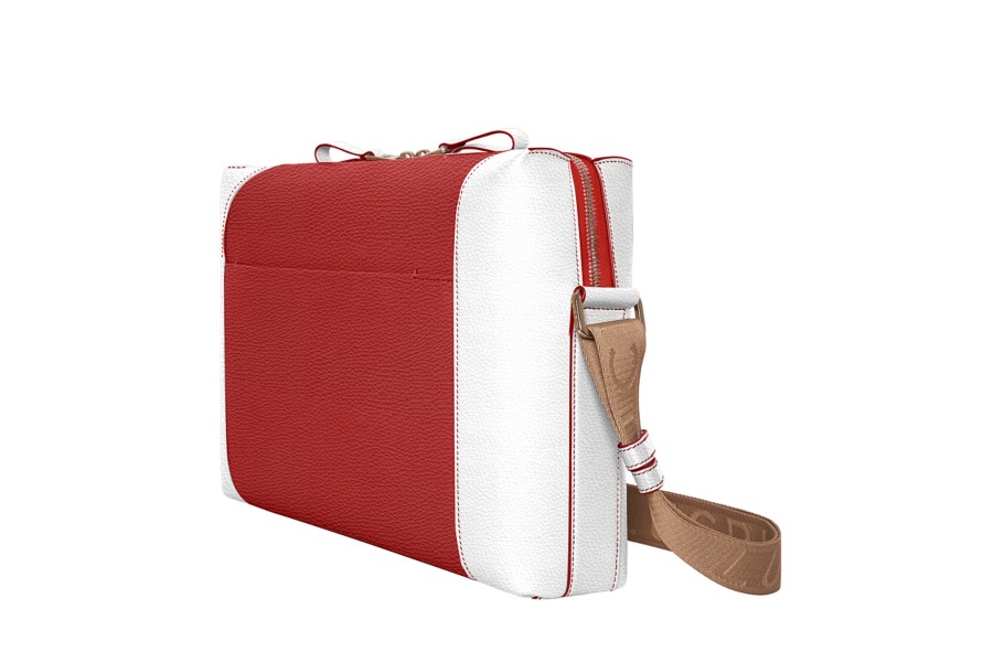 Messenger taschen - Rot-Weiß - Genarbtes Leder