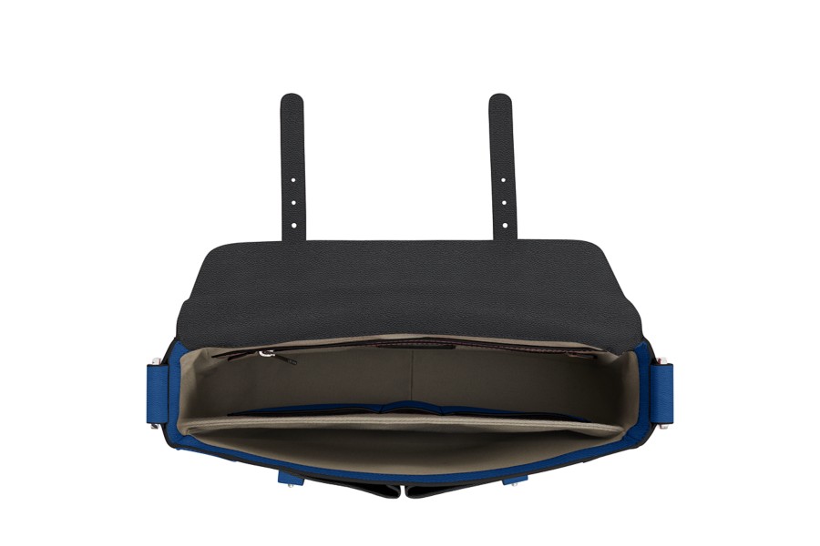 Umhängetasche - Schwarz-Azurblau - Genarbtes Leder
