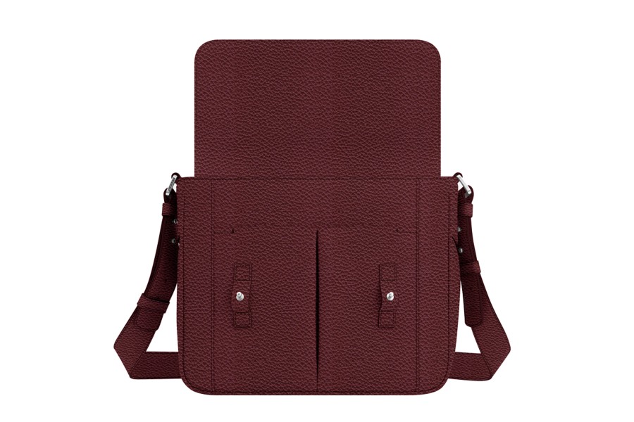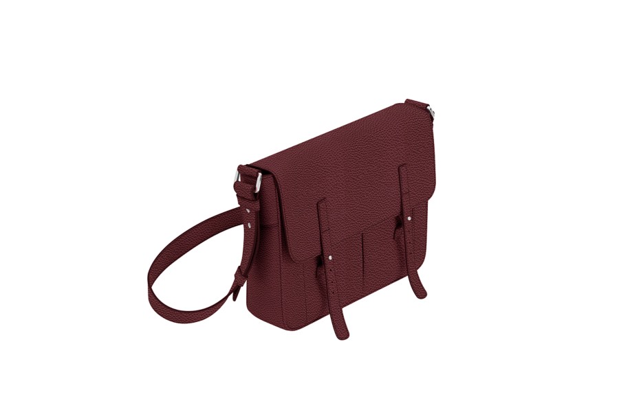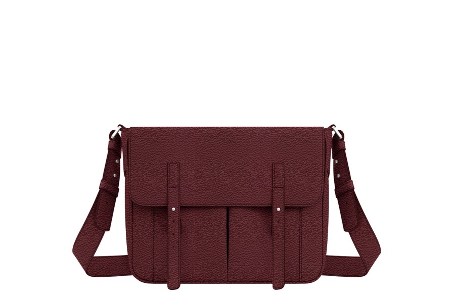 Umhängetasche - Weinrot-Nerz - Genarbtes Leder