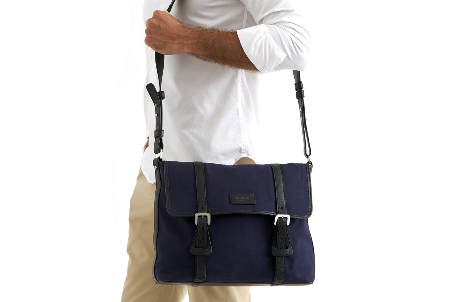 Die Designer Collection von Lucrin präsentiert eine Kuriertasche aus Leinen mit üppiger Lederoptik. Diese Kuriertasche ist bequem, elegant und ideal dafür geeignet, jeden Tag Ihre Unterlagen, Ihren Laptop und andere wichtige Dinge zu transportieren. Sie können diese stilvolle Tasche an Ihrer Schulter oder vor dem Körper tragen.