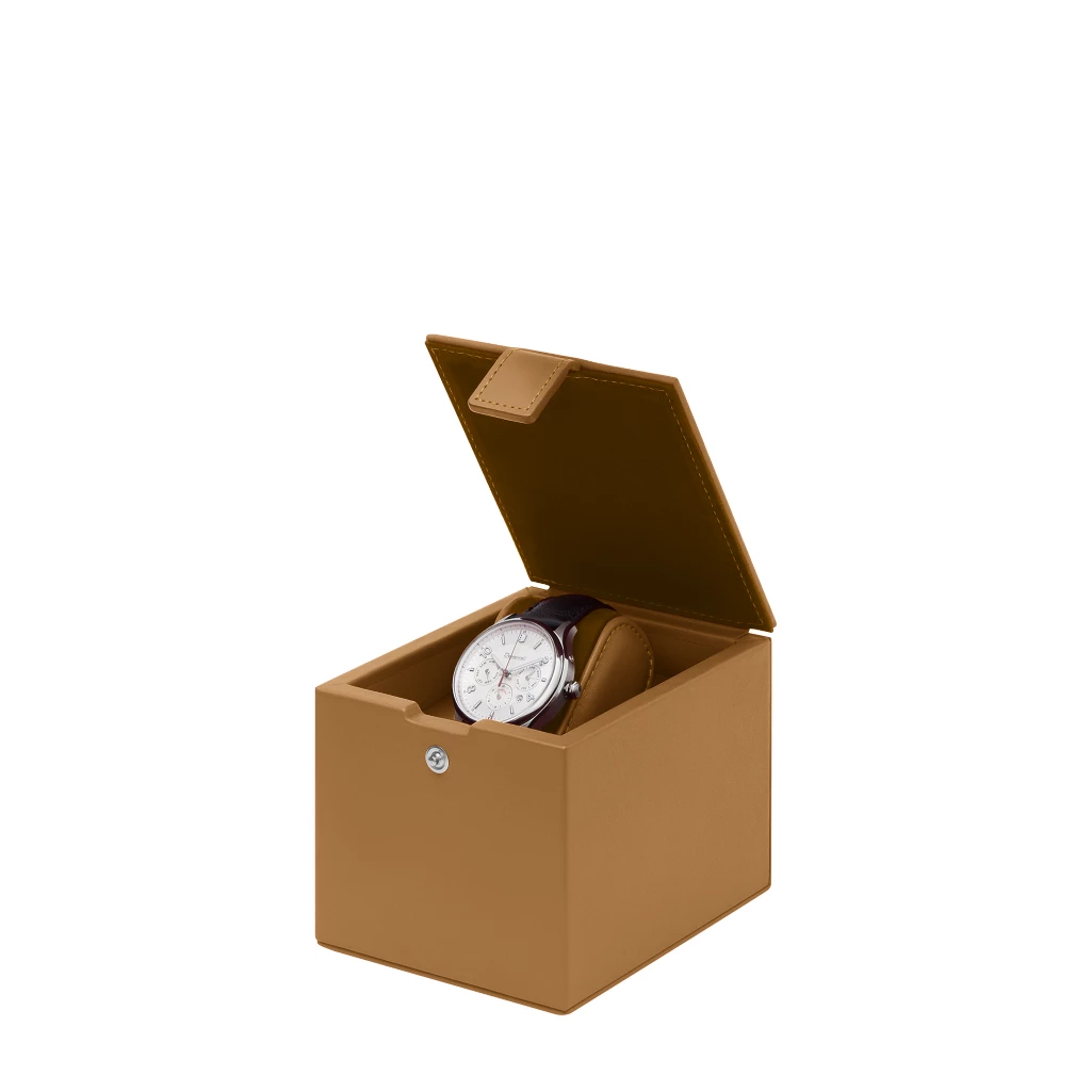 Es gibt eindeutig keinen besseren Schutz für Ihre Luxusuhr als diese Lederbox für 1 Uhr. Sie besteht aus einer festen Holzstruktur, die meisterhaft mit echtem Leder bezogen ist und besitzt ein entnehmbares Uhrenkissen für Ihre kostbarste Uhr im Inneren. Für maximale Sicherheit sorgt ein zusätzlicher Druckknopfverschluss. Das edle Uhrenetui kann mit einer wunderschönen Gravur personalisiert werden und ist in einer fantastischen Auswahl an Farben erhältlich.