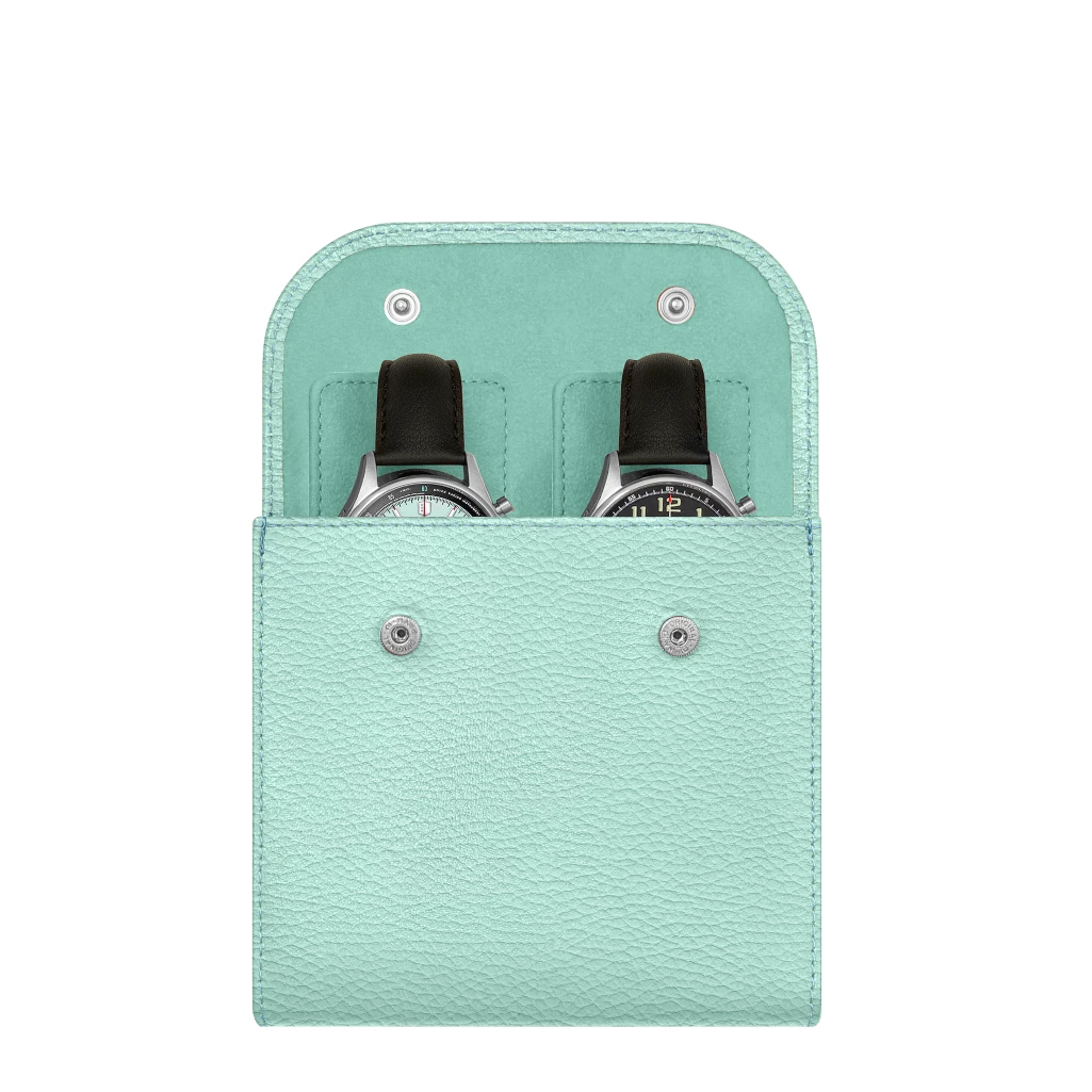 Uhrenetui für zwei Uhren Pastellaquamarin  - Genarbtes Leder
