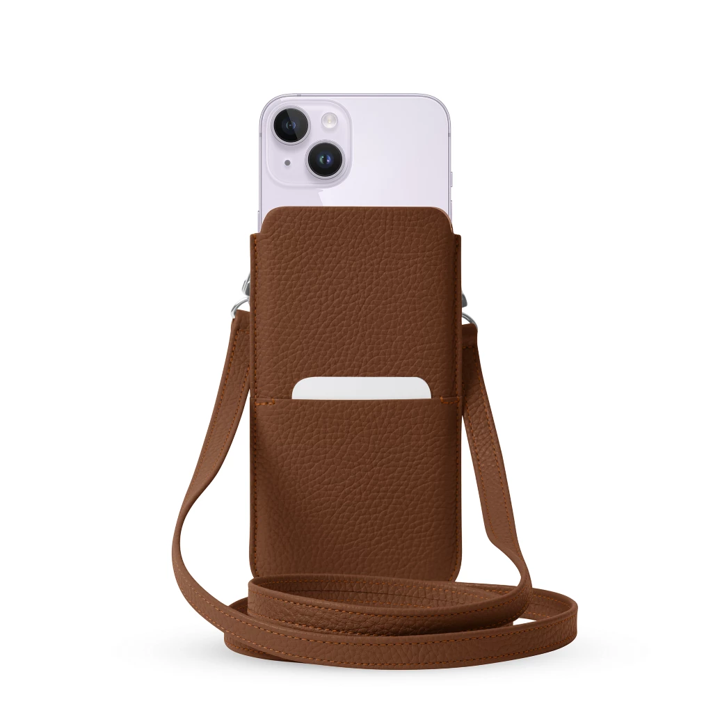 Umhängehülle – iPhone 14 Cognac  - Genarbtes Leder